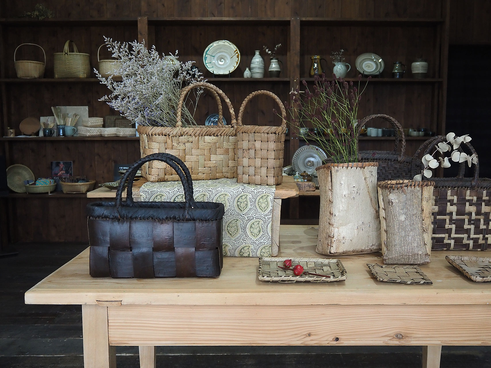Home › イベント › 10月のスケジュール 2025-10-04 10月のスケジュール 10月は通常通り、土日月火の週4日オープンします。企画展は下記の通りで、それ以外の日程は常設展です。 9/27(土)~10/7(火) 「秋田の樹皮細工」展10/25(土)~28(火) 「東欧の小さな蚤の市」展 10/25(土)26(日)は「野菊市」参加店として、野菊も飾ります。 野菊市2025 「秋田の樹皮細工」展の店内の様子 常設も、いつもと違う景色の企画展も、ぜひどちらもお楽しみください。ご来店お待ちしております。 タグ: イベント, スケジュール 関連記事 初売りセール、やります 工房コトリと「暮らしになじむ椅子敷 ノッティング」 東欧の小さな蚤の市 秋田の樹皮細工 THINNING in 博多阪急 秋田の樹皮細工 東欧の小さな蚤の市